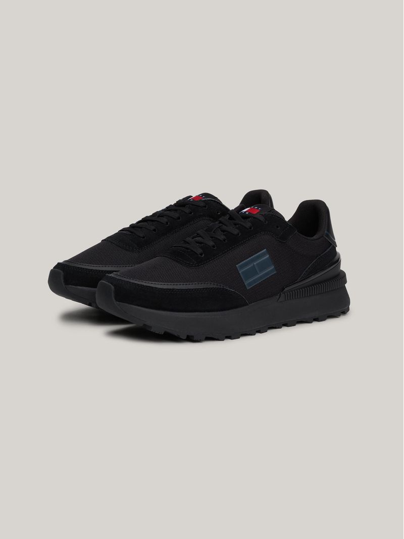 Sal a correr con estos discretos zapato tenis de running con cordones, paneles con texturas a contraste y un discreto parche de Tommy tonal.